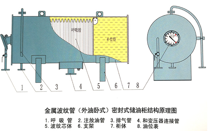 金屬波紋管(外油臥式)密封式儲(chǔ)油柜